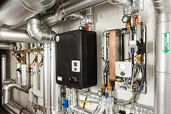 Die Gründe für die umfassende energetische Sanierung waren vielfältig. Zum einen entsprachen Heizungsanlage und Warmwasserbereitung nicht mehr dem Stand der Technik und hatten teilweise das Ende ihres Lebenszyklus erreicht. Zum anderen ermöglicht die neue Gebäudetechnik einen energieoptimierten Betrieb, der sowohl die Umwelt schont als auch die Betriebskosten erheblich senkt. So wurde die alte Gas-/Ölheizung durch eine Erdsondenwärmepumpe und eine Photovoltaikanlage für die benötigte Stromzufuhr ersetzt. Die gewonnene Erdwärmeenergie wird dabei zum Heizen sowie zur Warmwasserbereitung verwendet. Zur Speicherung der Wärmeenergie dient dabei der ehemalige Boiler des Gebäudekomplexes.