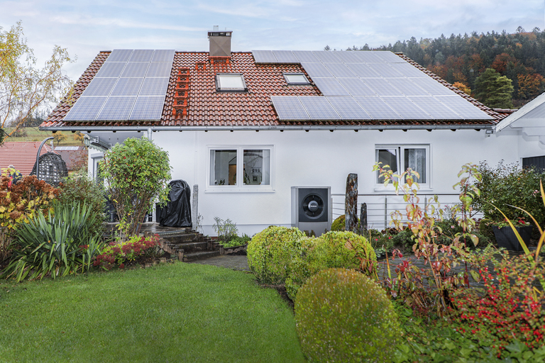 Bereits seit 2009 erzeugt Familie Hipp eigenen Strom mit einer PV-Anlage auf dem Dach des Einfamilienhauses. Bislang wurde dieser in das öffentliche Versorgungsnetz eingespeist und vergütet. „Es war jedoch möglich, den Einspeisevertrag umzustellen. Durch einen Zählerumbau können wir jetzt regenerativen Strom aus unserer eigenen Anlage für den Betrieb der Wärmepumpenaußeneinheit nutzen. Das ist nachhaltig und reduziert unsere Energiekosten“, so der Hausbesitzer.