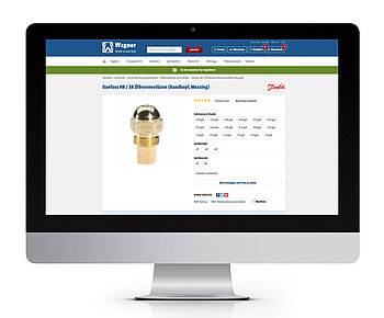 Sie suchen Danfoss Rundkopf-Düsen in der Größe 0,50 gph / 60° / HR, dann können Sie intuitiv und direkt diese Kette anklicken. Schon haben Sie die richtige Düse ausgewählt und sehen den Einzel- und den Staffelpreis. Über die Mengeneingabe und den Warenkorb-Button legen Sie die gewünschte Anzahl in den Warenkorb. Und weiter geht's mit der nächsten Größe.