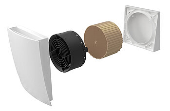 Auch im Bereich der dezentralen Lüftungssysteme umfasst das x-well Sortiment verschiedene Produkte für vielfältige Anforderungen. Dazu gehören Außenwandluftauslässe für eine natürliche Luftnachströmung, Einrohrlüfter und Kleinraumlüfter für eine einfache Entlüftung sowie die besonders effizienten Pendellüfter x-well D13. Diese im Pendelprinzip korrespondierenden Lüfter kommunizieren per Bluetooth, sodass sie bei der Montage nicht aufwendig miteinander verdrahtet oder verkabelt werden müssen. Im Betrieb sorgt x-well D13 mit einer hohen Wärmerückgewinnung von ca. 87 Prozent und einer Effizienzklasse von A/A+ für ein optimales Raumklima.