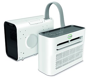 Ein weiteres Feature des SKC: Er kann die Luft auch reinigen. Der integrierte Filter lässt sich einfach herausnehmen und säubern, entweder mit einem Staubsauger oder mit lauwarmem Wasser.