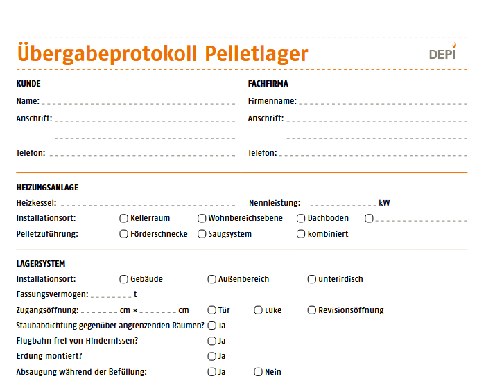 DEPI: Übergabeprotokoll Pelletlager
