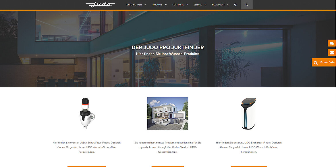 Das Portfolio der JUDO Wasseraufbereitungstechnik ist so vielfältig wie bei kaum einem anderen Anbieter. Um Planern, Installateuren und Handwerkern die Auswahl zu erleichtern, hat das Unternehmen den JUDO Produktfinder entwickelt. Der intelligente Assistent führt intuitiv durch die Produktsuche und liefert für jede Anwendung die passende Lösung.