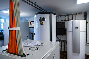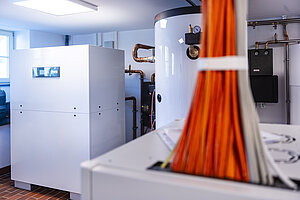 Das Gebäude wurde von Grund auf saniert und umgebaut. Unter anderem wurde eine Fußbodenheizung installiert. Die Beheizung erfolgt nun über eine Sole-WasserWärmepumpe des Herstellers Weißhaupt, Modell WWP S75 ID. Als Wärmequellsystem dient eine Erdsonde. Die Heizleistung der Wärmepumpe liegt bei 73,5 Kilowatt und liefert eine Jahresarbeitszahl von 5,2 im Heizbetrieb. Das Warmwasser wird nicht über die Wärmepumpe bereitgestellt.