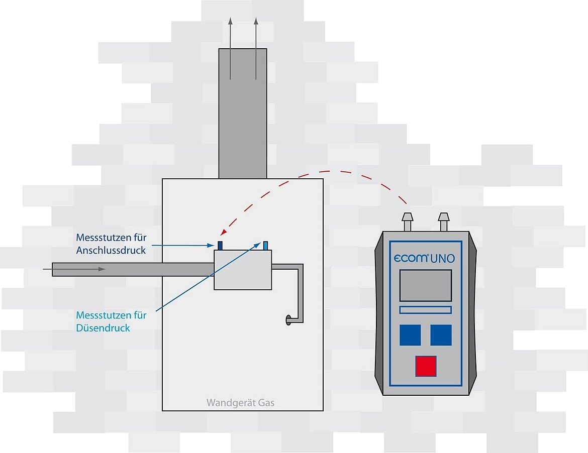 Das ecom-UNO 200 Differenzdruck-Messgerät ist ein nützlicher Helfer, zum Beispiel wenn es um die korrekte Einstellung des Gasbrenners geht.