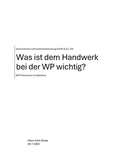 QUERSCHIESSER: Was ist dem Handwerker bei der WP wichtig?