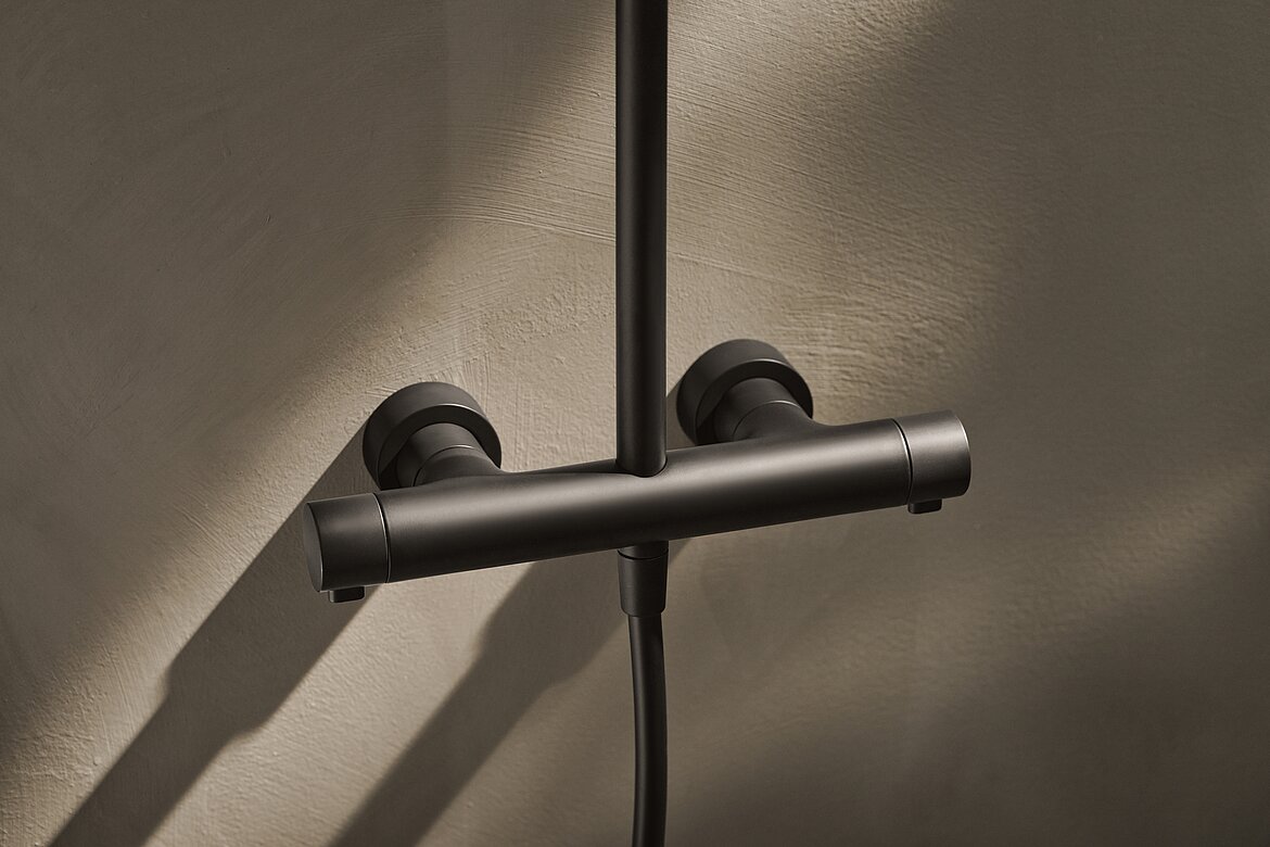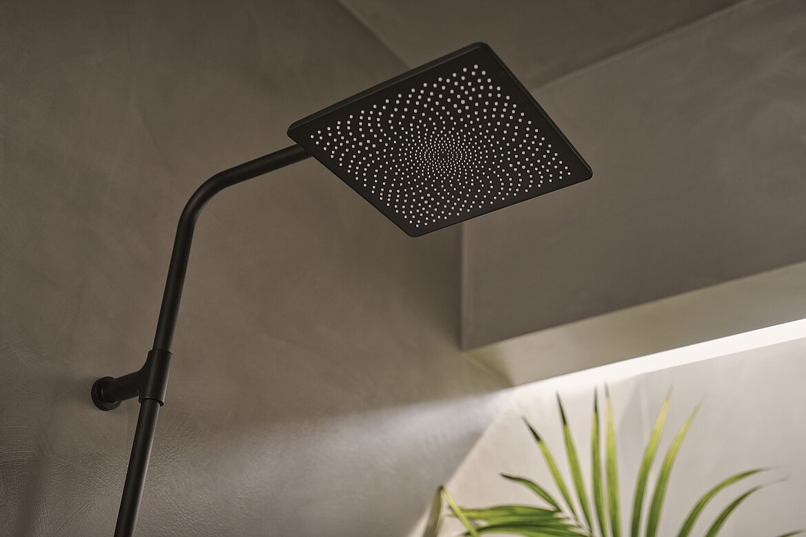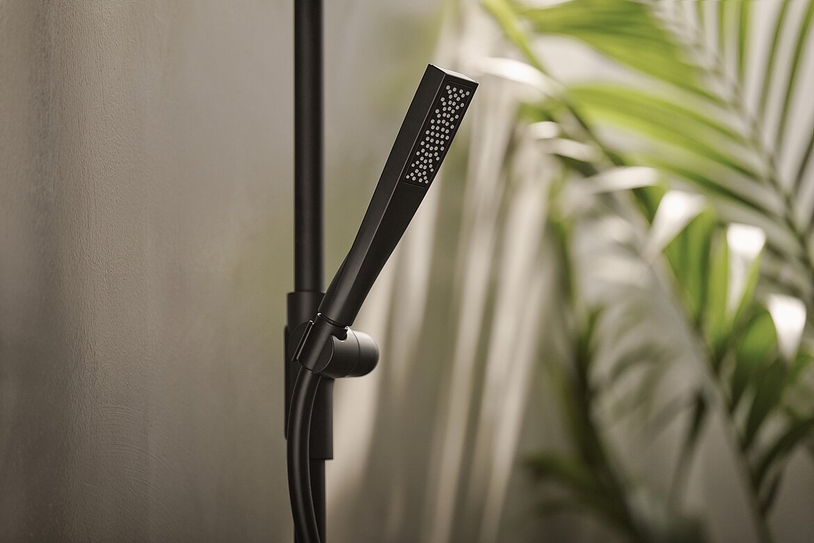 Kopfbrause, Stabhandbrause und Thermostat in edlem Matt Black. Bildrechte: Hansa Armaturen GmbH
