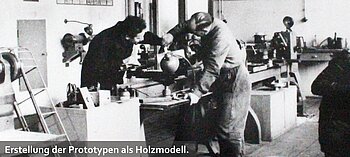 Da es zur damaligen Zeit technische Zeichnungen für jedes Detail nicht vorhanden waren, wurden die Prototypen in reiner Handarbeit zunächst aus Holz gefertigt. Wenn diese gepasst haben, wurden sie anschließend in der Produktion in Sand geformt und danach in der Gießerei gegossen. Der Transport in die nähere Umgebung erfolgte bis zum Jahre 1936 mit Pferdefuhrwerken - der Stall und das Heulager für vier Pferde befanden sich direkt im Werksgebäude.
