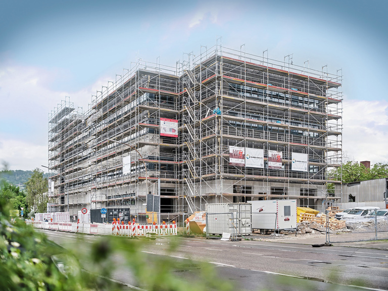 In Fellbach nahe Stuttgart entsteht ein neues Logistikzentrum für die Firma Andreas Maier Fellbach GmbH & Co KG, kurz: AMF. Sie stellt Speziallösungen für Spann-, Schraub- und Schließtechnik her und liefert weltweit an Industriekunden. Das neue Gebäude mit zirka 4.200 Quadratmetern Fläche beinhaltet ein automatisches Hochregallager, einen Versandbereich sowie Büro- und Sozialräume und wird per Wärmepumpe beheizt. Für die Heizungs- und Druckluftinstallationen setzte der beauftragte Sanitär- und Heizungsunternehmer, Leon Walter von der Mergenthaler Zerweck GmbH, erstmals das neue Nichttrinkwasser-Edelstahlsystem Geberit Mapress Therm ein: Qualität, Verarbeitungsvorteile und Preis überzeugten den Geschäftsführer und seine Mitarbeiter ebenso wie der Service von Geberit.