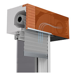 Als dritte Innovation stellt Aereco zusammen mit dem Ziegelhersteller Schlagmann-Poroton® einen Rollladenkasten-Lüfter zur dezentralen Wohnraumlüftung mit Wärmerückgewinnung für den Neubau vor. Die Aereco- Lüftungseinheit wird am Schlagmann Standort in Rötz direkt in Rollladen- oder Raffstorekästen integriert und kann als Komplettelement in die Außenwand verbaut werden. Der im Lüftungsgerät integrierte Wärmetauscher nutzt die Energie aus der Abluft und erwärmt die Zuluft, was neben dem gesunden Wohnklima zur Energieeffizienz des Systems beiträgt.