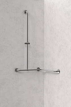 Kunden jetzt noch mehr Sicherheit und Komfort bieten. Denn wo bisher zwei separate Stützgriffe nötig waren, können nun beide Innenwände des Duschbereiches mit nur einem Produkt ausgestattet werden. So wird die Drehbewegung des Körpers beim Duschen erleichtert, da die Hand ununterbrochen am Handlauf entlanggleiten kann. Eine echte Unterstützung im Alltag für Menschen mit eingeschränkter Mobilität.