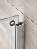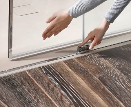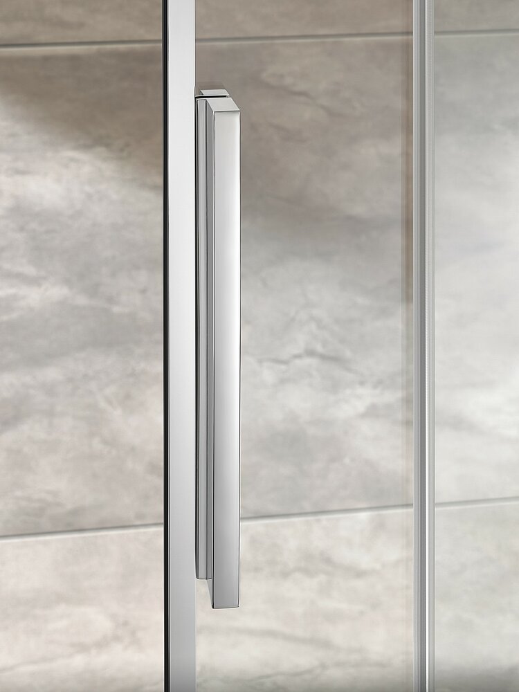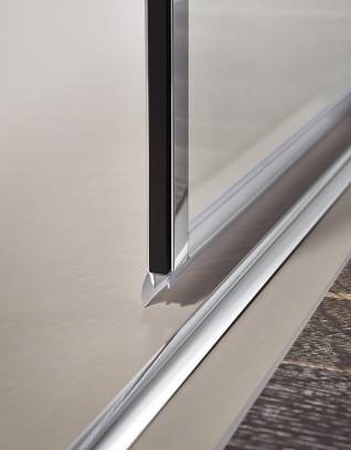Die platzsparende Schiebetür eignet sich hervorragend für den Einsatz in großen wie kleinen Bädern und bietet optimalen Spritzschutz: Ein Magnetprofil sorgt bei der Atelier Plan in Kombination mit den ergonomisch eleganten Griffen und der Softclose-Funktion für ein leises und leichtes Öffnen, beim Schließen wird sie dagegen sanft eingezogen. Zusammen mit dem in Form und Funktion durchdachten Riegelgriff erleben Nutzer so ein komfortables Handling der Duschkabine. Der Spritzwasserschutz wird durch das Wasserabweisprofil an der Schiebetür optimal unterstützt. So bleibt das Bad trocken. Ebenfalls praktisch ist der Abklappmechanismus in der Türführung. Dank ihm kann die Schiebetür für eine einfache Reinigung nach innen geschwenkt werden.