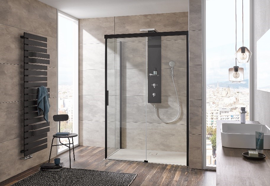 Die Atelier Plan Schiebetür besticht dank des Exzenterprofils mit einer innovativen Technik, die eine schnelle und einfache Montage garantiert. Dabei wird das Exzenterprofil ganz einfach an die Wand montiert. Im nächsten Schritt wird das Einscheiben-Sicherheitsglas des Festelements eingesetzt sowie richtig positioniert und das Exzenterprofil einfach geschlossen. Dank des edlen Designs ist diese neuartige Technik für den Nutzer nicht zu sehen. Erhältlich ist das Exzenterprofil in zeitlos-moderner Chromoptik oder dem aktuellen Trend Schwarz-matt. Wird ein passender Sichtschutz zur Duschkabine gewünscht, können Fachhandwerker ihren Kunden eine große Auswahl der HSK Glasmattierungen anbieten. Die Linea.01 als Mittelstreifendekor oder Linea.02 als vollflächiges Dekor setzen ein optisches Highlight und dienen zugleich als zeitlos-moderner Sichtschutz.
