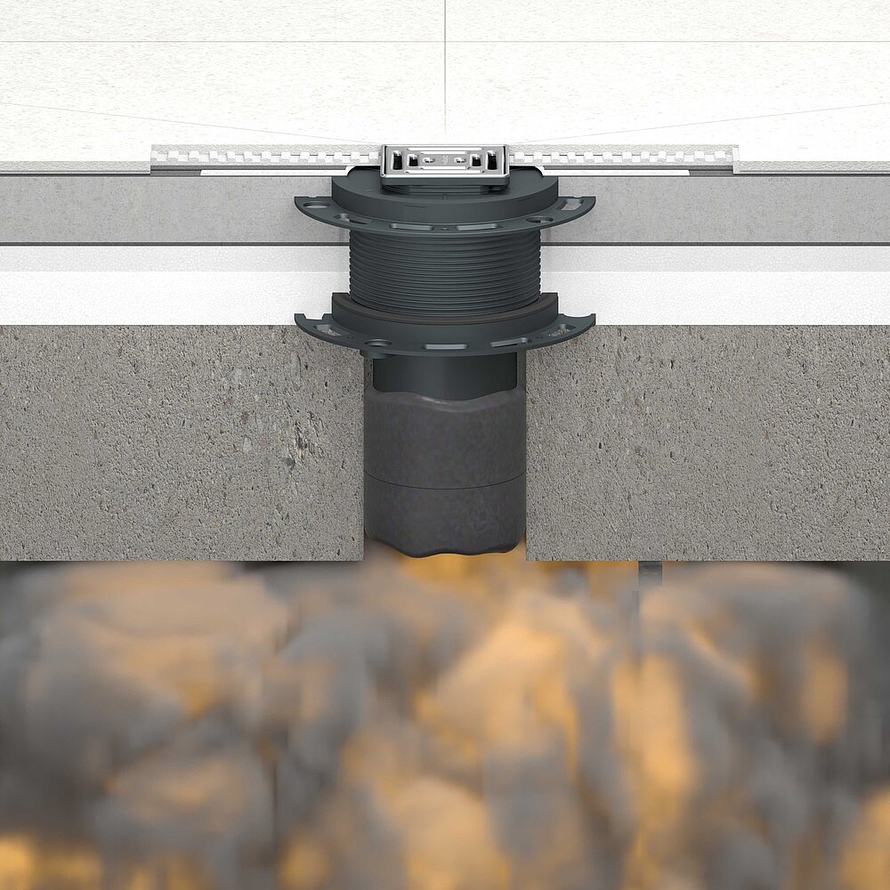 Zur Abschottung von Deckendurchführungen bietet Dallmer installationsfertige Brandschutzelemente an. Kernstück dieser Elemente ist eine Brandschutzeinlage bestehend aus einer intumeszierenden Masse (im Brandfall aufschäumender Baustoff), die bei einer Hitzeeinwirkung von ca. 150 °C aufzuschäumen beginnt. Das Volumen des Materials vergrößert sich dabei um das 15- bis 20-Fache. Dadurch wird die Deckendurchführung schnell, zuverlässig und sicher verschlossen. Weder Wärme noch Flammen oder Rauch können sich über diese Durchführung weiter ausbreiten.