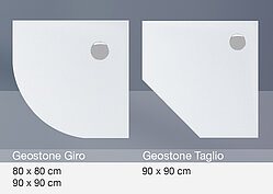Wir verfügen über eine Vielzahl an Formaten von 80-200 cm in der Breite und 80-100 cm in der Länge und bieten Ihnen auf Anfrage auch Sondermaße. Das Zuschneiden vor Ort ist möglich. Alle Wannen haben eine innere Tiefe von 20 mm und etwa 35 mm Gesamthöhe. Außerdem gibt es die Wanne als Viertelkreiswanne Geostone Giro oder Fünfeckwanne Geostone Taglio und auf Anfrage auch in weiteren Farben.