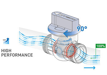 - Keine Ablagerungen: die Technopolymerkugel und spezielle Dichtungen verhindern Kalk- und Schmutzablagerungen – der Kugelhahn bleibt stets leichtgängig und effizient.