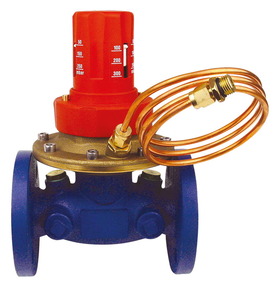 Der fix eingestellte Sollwert auf 23 kPa erleichtert die Installation und Inbetriebnahme erheblich, da keine zusätzliche Feinjustierung erforderlich ist. Das Produkt ist geschraubt oder geflanscht von DN 15 - DN 80 erhältlich.