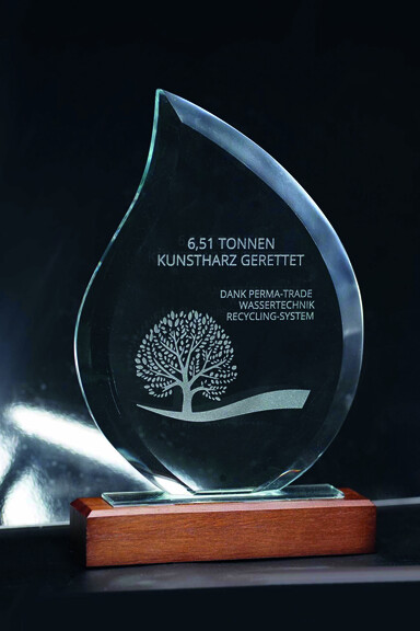 Das bei der permaLine Anlagenwasseraufbereitung eingesetzte Spezialharz ist bei perma-trade in ein eigenes Recyclingsystem eingebunden: SHK-Fachbetriebe dürfen ihre aufgebrauchten permasoft-Behälter kostenlos an das Unternehmen zurückschicken, damit das Spezialharz wieder aufbereitet und weiter verwendet werden kann. Die aktivsten „Müllvermeider“ unter den perma-trade Kunden wurden für ihren besonderen Einsatz beim Umweltschutz jetzt mit dem „perma-trade Nachhaltigkeitsaward“ ausgezeichnet.