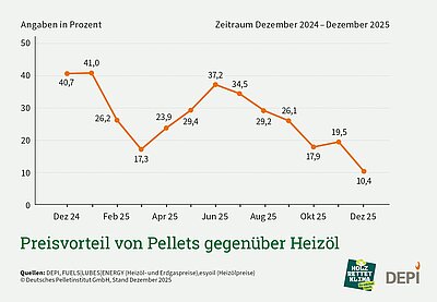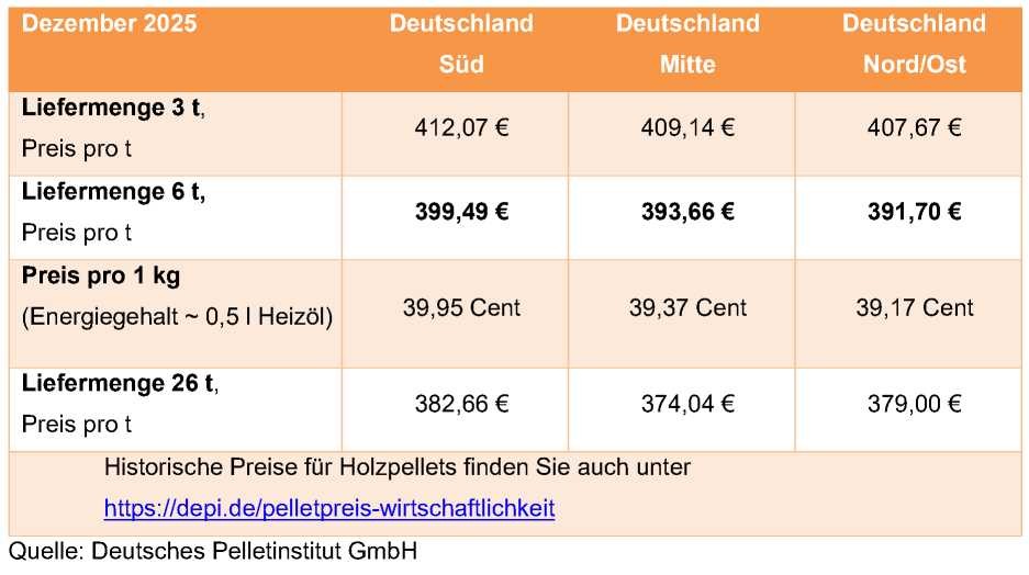 DEPI-Pelletpreis Dezember 2025 6 t bundesweit: 397,46 €/t
