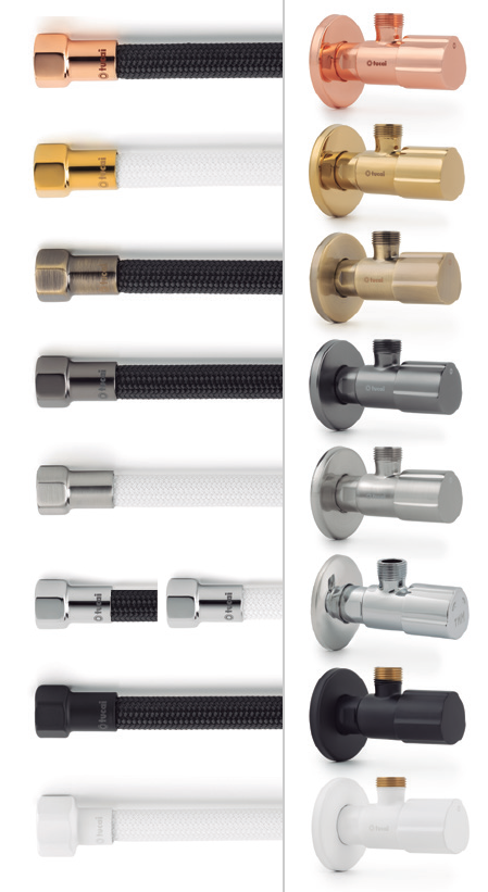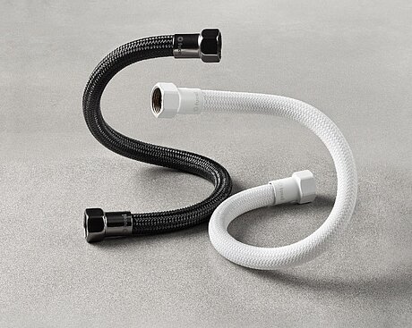 In den Grundfarben Schwarz und Weiß bieten die Premium-Flexschläuche und Eckventile jedem Anwender maximale kreative Freiheit und ermöglichen es, farbenfrohe Armaturen zu vervollständigen oder Innenräume zu gestalten. Funktional, hygienisch und ästhetischer als je zuvor, passt diese neue Serie perfekt zu den neuesten Trends in der Gestaltung von Badezimmern und Küchen