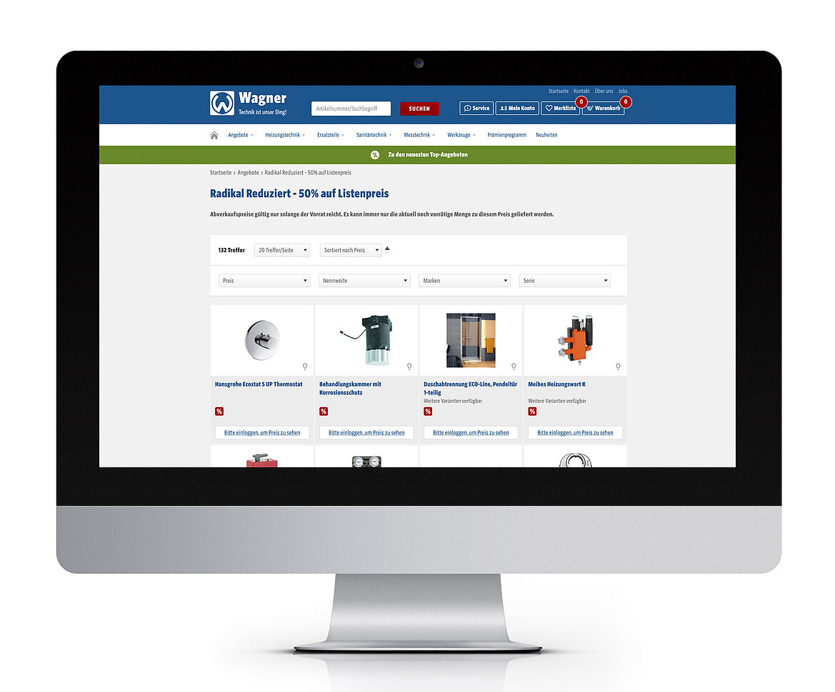 In dieser Produktkategorie gilt wirklich: alles muss raus. Für Sie die ideale Möglichkeit extrem zu sparen. Denn hier erhalten Sie auf den vorherigen Wagner Nettopreis 50 % Abverkaufs-Rabatt.