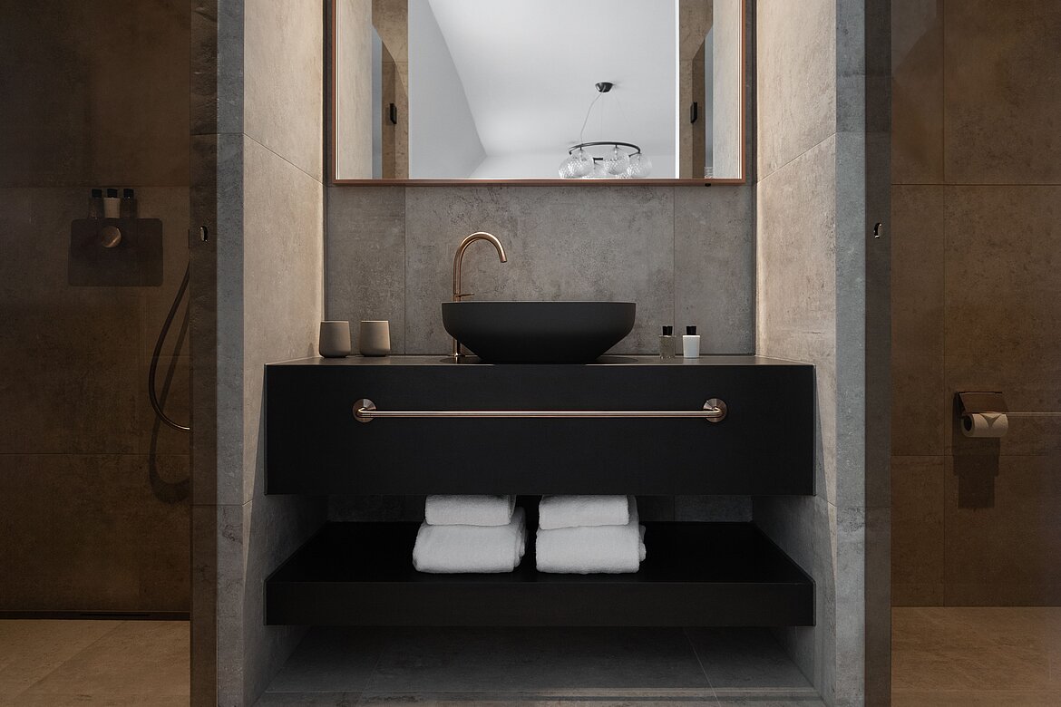 Diese einzigartige Komposition aus drei legendären Kollektionen - der puristischen AXOR One, der sinnlichen AXOR Citterio C und der schlicht-eleganten AXOR Starck - unterstreicht die gelassen-kultivierte Philosophie des Park Lane Copenhagen. Die in glänzendem Brushed Brass gehaltenen Armaturen verleihen dem Raum ein einmaliges Ambiente voller Funktionalität, Strahlkraft und Kontraste. So entfaltet das Badeerlebnis eine inspirierende, wiederbelebende Wirkung - und verkörpert damit höchste Gastfreundschaft.