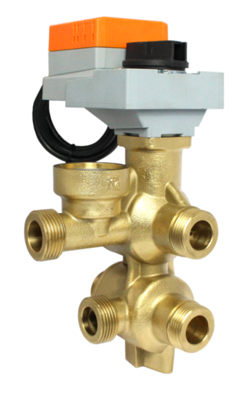 Die Installation eines HERZ Druckunabhängigen 6-Wege-Regelkugelhahnes reduziert die Anzahl der zum Umschalten und zur Regulierung des Systems erforderlichen Ventile. Mit einer Drehung von 90° eines Drehantriebes kann sowohl die Umschaltung Heizen-Kühlen als auch die Regelung der Heizseite und der Kühlseite durchgeführt werden. Der integrierte Differenzdruckregler hält den Differenzdruck über das Regelventil konstant und verhindert den unbeabsichtigten Druckanstieg. Unabhängig von Änderungen des anliegenden System-Differenzdrucks fließt immer die gleiche eingestellte Durchflussmenge über den Regelkugelhahn. Durch Zwischenstellungen kann der Durchfluss geregelt werden.