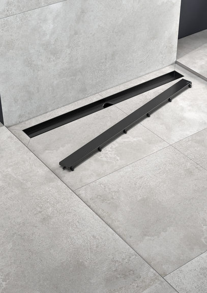 ein noch breiteres Farbspektrum für kreative Raumgestaltungen im Badezimmer zur Hand. Harmonische Atmosphären oder spannende Farbkontraste – die Duschrinne setzt stilvolle Akzente und erfüllt individuelle Designwünsche. Bei der Wahl einer neuen Duschrinne zählt neben einem attraktiven Design gleichermaßen der Nutzungskomfort: Die Zweikomponenten-Pulverbeschichtung, bestehend aus Grundierung und Pulverlack, ist besonders kratz- und stoßfest. Diese vielfach getestete Beschichtung verleiht der Duschrinne aber nicht nur eine makellose Oberfläche, sondern gewährleistet obendrein eine mühelose Reinigung. Zusätzlich zu den Rinnen gibt es die Designabdeckungen „steel“, welche ebenfalls mit schwarz matt und weiß matt eingefärbten Muldenfüßen ausgestattet sind, um Reibungen auf Metall zu verhindern.