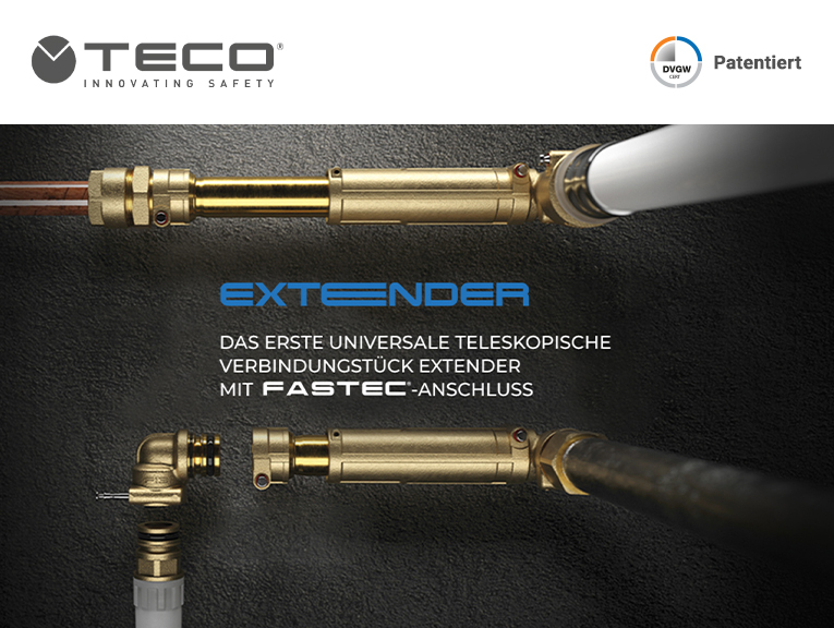 Müssen Sie Rohrleitungen in kurzer Zeit verbinden oder reparieren, auch in engen Räumen? EXTENDER von TECO ist das universelle Verbindungsstück, das jeden Eingriff einfach, schnell und sicher macht.