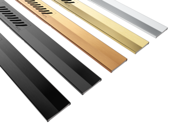 Neben geschliffen-elektropoliertem Edelstahl stehen PVD-veredelte Varianten in Schwarz, Graphit, Gold und Kupfer zur Verfügung. Damit lässt sich die Linienentwässerung gezielt auf Armaturen, Beschläge oder Farbkonzepte abstimmen. Die elektropolierte Oberfläche reduziert Schmutzanhaftungen und unterstützt ein nahezu rückstandsfreies Abfließen des Wassers. Die Designlinie „Stripes“ fügt sich zurückhaltend in unterschiedliche Badarchitekturen ein und betont die lineare Gestaltung bodengleicher Duschen. Die Rinne kann sowohl auf der Fläche als auch wandnah positioniert werden und passt sich damit unterschiedlichen Entwurfsansätzen an.
