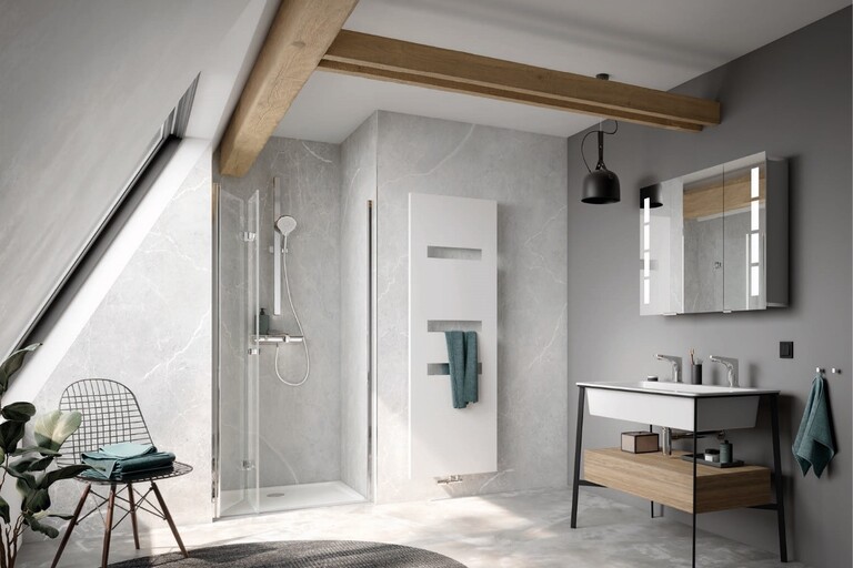 Funktionale Premiumduschen auf kleinem Raum dank Drehfalttüren