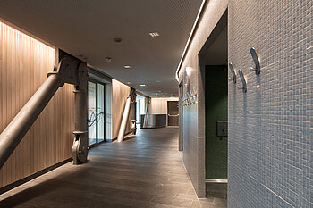 Bei den Duschen haben sich die Betreiber für die adaptive Multifunktions-Wasserstrecke CONGENIAL entschieden. Das vielseitige und zuverlässige System für Duschraumlösungen hat sich besonders für den Einsatz in öffentlichen Bereichen bewährt und ist in das CNX Wassermanagement-System eingebunden. An den Waschtischen sind die loopino Armaturen G10 von CONTI+ im Einsatz. Die elektronisch gesteuerten Armaturen funktionieren durch ihre Infrarot-Doppelsensorik berührungslos. Im Wellness-Bereich überzeugen die CONTI+ CONWELL Garnituren: Die Eimer-Schwallbrause sorgt mit ihrem 16-Liter-Kübel aus hochwertigem Kambalaholz für erfrischende Abkühlung nach dem Saunagang. Die CONWELL Blitzguss-Garnitur eignet sich ebenfalls perfekt zur Hydrotherapie und für Kneipp´sche Anwendungen.