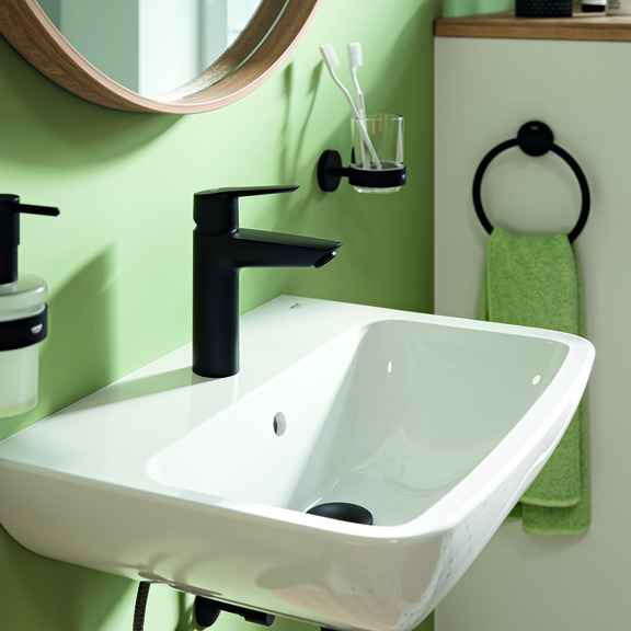Dank einer langlebigen Pulverbeschichtung ist Matt Black die ideale Wahl für den täglichen Gebrauch. Die mattschwarzen Produkte im Preiseinstiegssegment sind beständig gegen Korrosion, Verblassen und Kratzer. Dadurch wirken sie auch nach jahrelangem Gebrauch makellos schön. Für jeden Bedarf gibt es den Bestseller GROHE Eurosmart in verschiedensten Designs in Matt Black.
