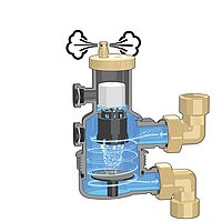 Er wurde speziell für Wärmepumpenanlagen entwickelt und ist in der Lage, im hohen Maße (bis zu 99 %) der in der Wärmeträgerflüssigkeit enthaltene Luft im ersten Durchfluss abzuführen. Mit dem durch den Hocheffizienzentlüfter entlüfteten Anlagenwasser funktionieren die Wärmepumpensysteme unter optimalen Bedingungen und damit ohne Geräuschentwicklung, Korrosionsbildung, lokale Überhitzungen und mechanische Probleme.