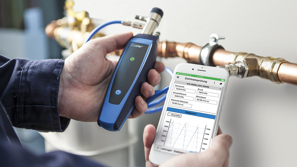 Einfach... geht’s in puncto Dokumentation typischer SHK-Messaufgaben bei Verwendung der CAPBs®-Sets und der kostenlosen App EuroSoft® live. Egal ob Dichtheitsprüfung von Gas- und Wasserinstallationen, Abdrücken von Fußbodenheizungssystemen, Heizungscheck, Heizungswasserprüfung, thermische Desinfektion oder andere Messaufgaben – mit dem modularen System lässt sich jeder Prüfablauf im Handumdrehen erledigen und automatisch als umfangreiches PDF-Protokoll mit Fotos, Notizen und Unterschrift dokumentieren.