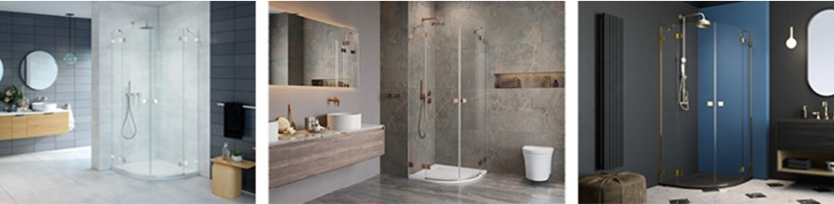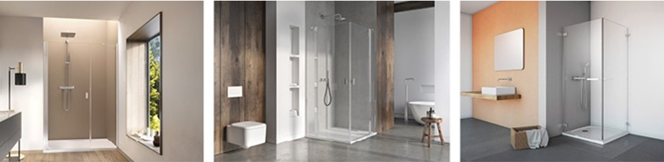Die vorgestellten Türsysteme bieten sich für die Eignung aller erdenklichen Konfigurationen an: Nischenlösung, U-Duschkabine, Eckduschen und Eckeinstiege, Fünfeckduschen, Rundduschen oder WALK-IN, mit ein oder zwei Türen, zur herkömmlichen Montage auf einer Duschwanne oder barrierefrei auf dem Boden.