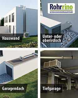 - Auf dem Garagendach: Direkte Rohrführung über das Dach – kompakt & effizient