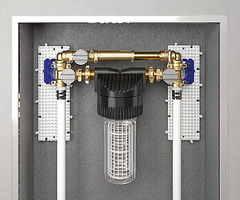 Sanitär-Wasseranschlusskonfiguration mit Filter und By-Pass