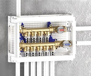 Sanitärverteiler mit Multi-Absperrung und motorizierbaren Hauptventilen
