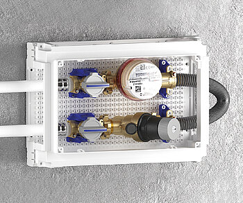 Box mit Ablesesystem und Ventilen (anpassbar mit Druckminderer, Y-Filter – Komponenten außerhalb des Standards)