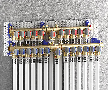 Sanitärverteiler mit motorisierten T-Ventilen