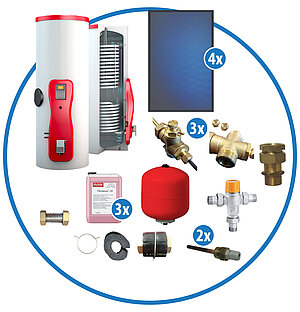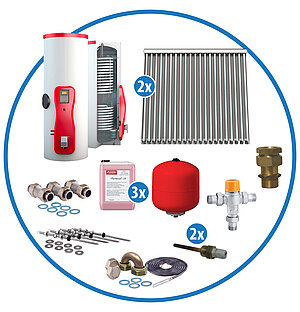Set: Vakuumröhrenkollektor, Speicher und Zubehör: