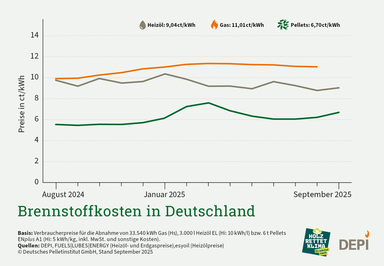 DEPI: Pelletpreis steigt im September saisonüblich