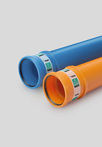 [1] Abwassersystem ohne Formteile. Klimaneutralität extern zertifiziert durch TÜV Rheinland, einschließlich Kompensation