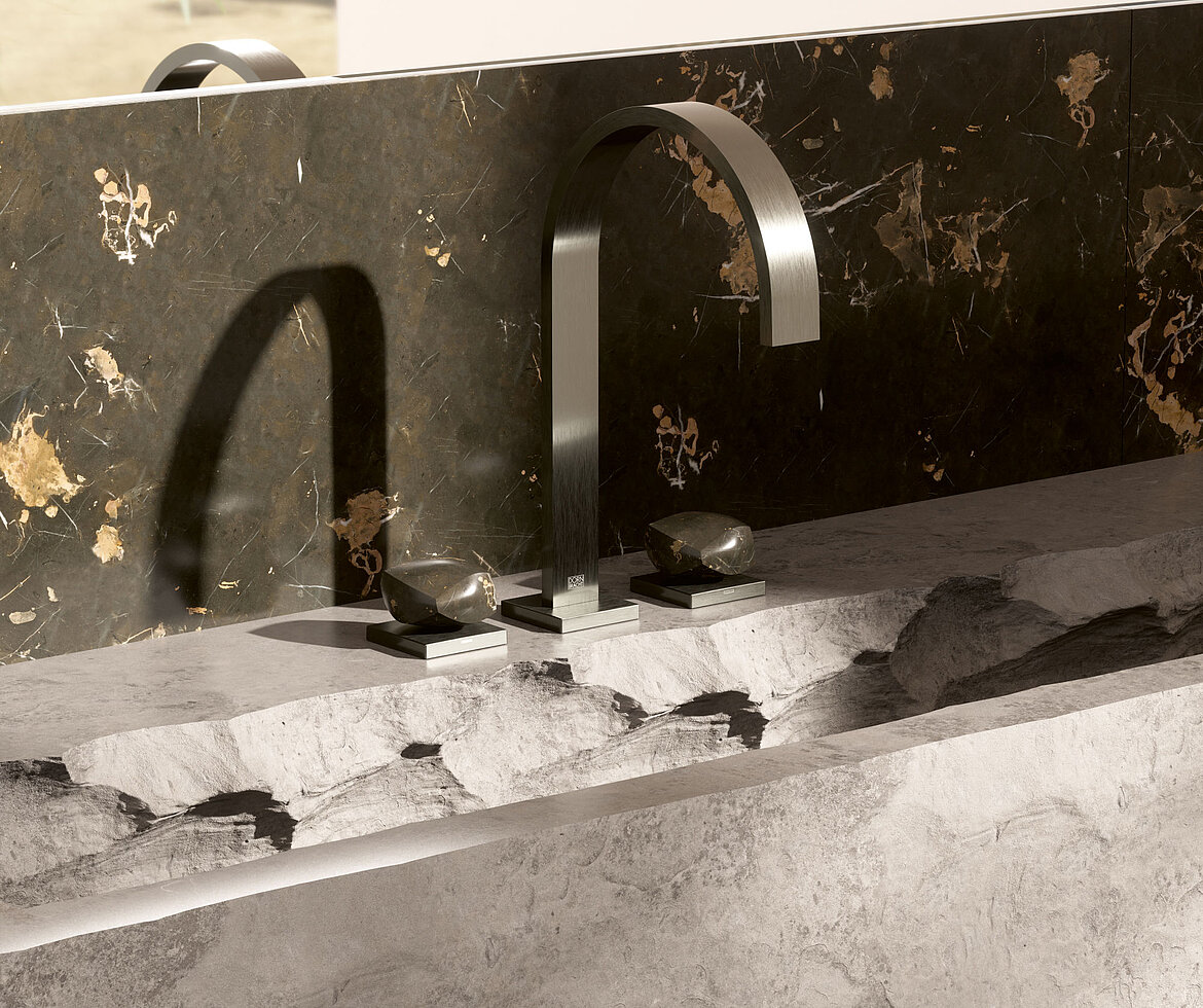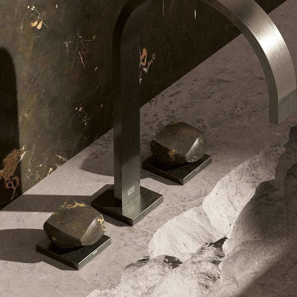 Eine maßgefertigte Version von „The Rock“ mit Griffen aus schwarzem Nero Portoro-Marmor (Copyright: Dornbracht).