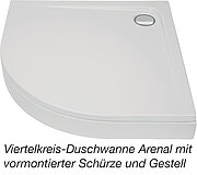 Bei 2,5 cm innerer Tiefe liegt ihr Mindestformat bei 80x80 cm, ihr Maximalformat bei 180x90 cm. Die Ausführung als Viertelkreis 80x80 cm und auch 90x90 cm ist zudem mit vormontierter Schürze inkl. Gestell verfügbar.
