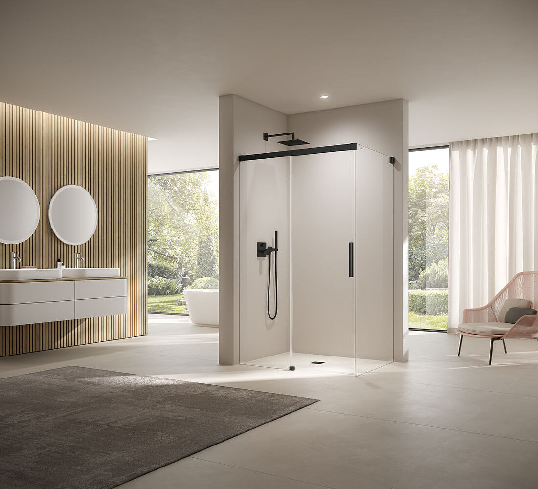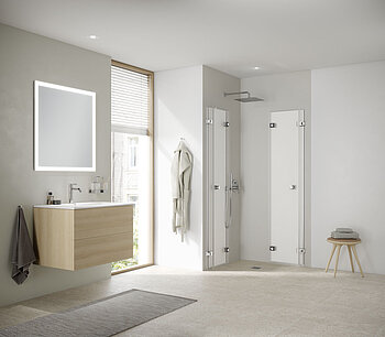 Ob Ecke, Nische oder freie Fläche: Die passende Kombination aus Duschform und Türmechanik schafft eine komfortable und gestalterisch überzeugende Lösung für jedes Badezimmer.