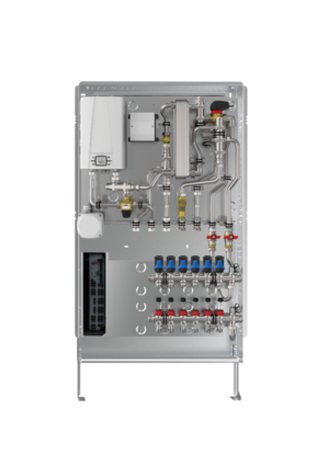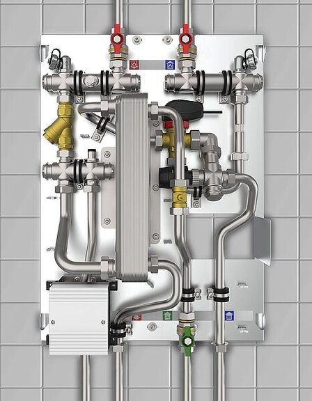 Im Mehrfamilienhaus lässt sich so der Wärme- und Wasserbedarf pro Wohnung individuell regeln. Vorkonfektionierte Einbauplätze für Kaltwasser- und Wärmemengenzählung je Wohnung erleichtern die Heizkostenabrechnung. Ein hydraulischer Abgleich erfolgt automatisch mittels Regelantrieben.
