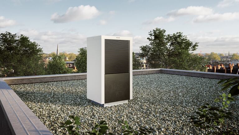 Ein weiteres Highlight ist das geräuschoptimierte Design mit Eulenflügel-Ventilatoren, das den Betrieb auch bei Volllast extrem leise macht. Mit 55 dB[A] bei A7/W55 nach EN 12102 im Normbetrieb hat die Wärmepumpe für ihre Leistungsstärke bemerkenswert niedrige Schallwerte. Zudem besitzt sie ein außergewöhnlich elegantes Design – ideale Voraussetzungen für den Einsatz in dicht bebauten städtischen Mehrfamilienhäusern. Daneben eignet sie sich auch für gewerbliche Anwendungen sowohl im Bestand als auch im Neubau.