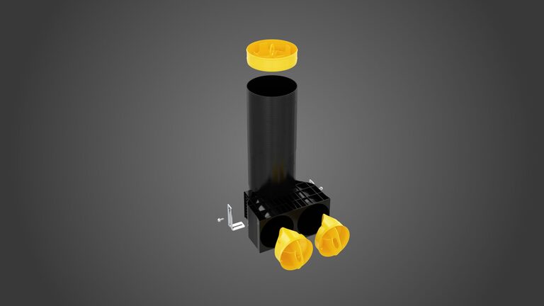 - Montagesicherheit: Der Stopfen blockiert das Rohr, solange er steckt – so wird verhindert, dass ein Rohr falsch oder unvollständig angeschlossen wird. Durch die Signalfarbe gelb ist zudem leicht ersichtlich, ob alle notwendigen Stopfen montiert wurden und das System dicht ist.